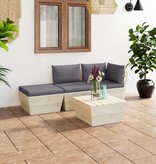 Deze 4-delige pallet tuinset met kussens is een uitstekende keuze om te relaxen en te genieten van het weer, een dutje te doen of te kletsen met familie en vrienden. De houten loungeset, met een tijdloos palletontwerp, geeft je terras, tuin of woonkamer een vleugje rustieke charme.