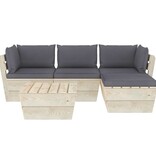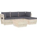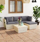 De tuinmeubelset is gemaakt van geïmpregneerd vurenhout waardoor hij duurzaam en stabiel is. Deze set heeft een massieve constructie en vereist weinig onderhoud. Het stevige tafelblad is ideaal om eten en drinken binnen handbereik te houden. Dankzij de 100% polyester bekleding en dikke vulling zijn de palletkussens zacht en zeer comfortabel. Bovendien maakt het modulaire ontwerp het mogelijk om de set in elke gewenste samenstelling te plaatsen.