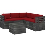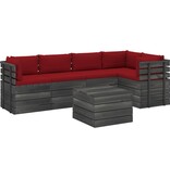 6-delige Loungeset met kussens pallet massief grenenhout