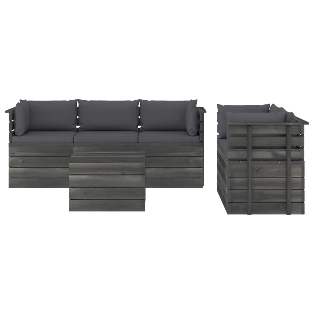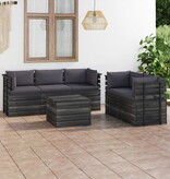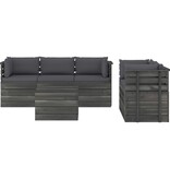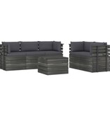 6-delige Loungeset met kussens pallet massief grenenhout