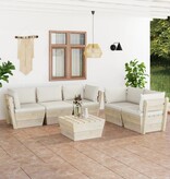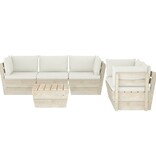 Deze 6-delige pallet tuinset met kussens is een uitstekende keuze om te relaxen en te genieten van het weer, een dutje te doen of te kletsen met familie en vrienden. De houten loungeset, met een tijdloos palletontwerp, geeft je terras, tuin of woonkamer een vleugje rustieke charme.
