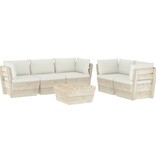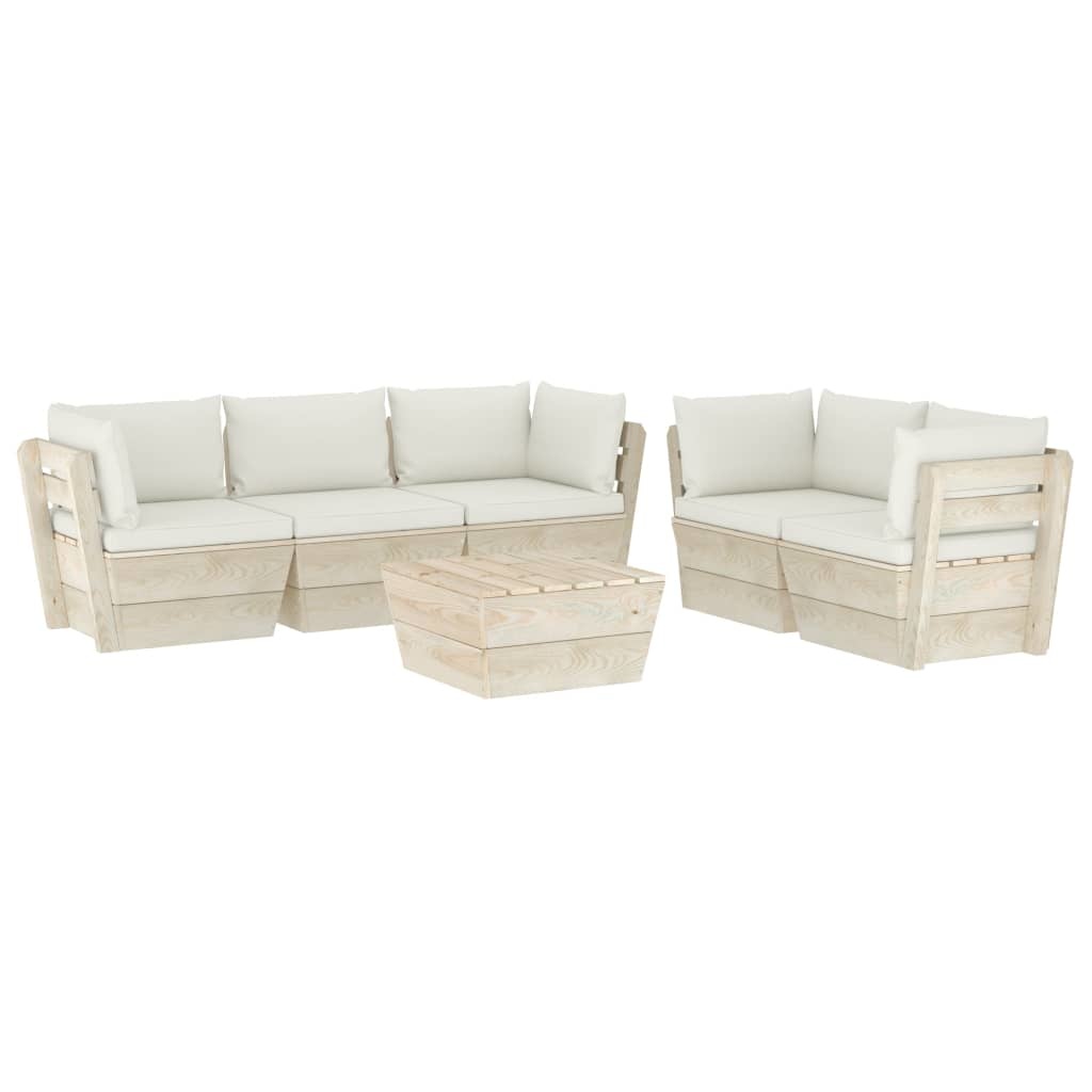 De tuinmeubelset is gemaakt van geïmpregneerd vurenhout waardoor hij duurzaam en stabiel is. Deze set heeft een massieve constructie en vereist weinig onderhoud. Het stevige tafelblad is ideaal om eten en drinken binnen handbereik te houden. Dankzij de 100% polyester bekleding en dikke vulling zijn de palletkussens zacht en zeer comfortabel. Bovendien maakt het modulaire ontwerp het mogelijk om de set in elke gewenste samenstelling te plaatsen.