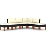 De set heeft een gepoedercoat stalen frame bedekt met PE-rattan waardoor hij weerbestendig en gemakkelijk schoon te maken is. De massief eucalyptushouten poten dragen bij aan de stevigheid en stabiliteit. De tuinset wordt geleverd met dik gevoerde kussens voor ultiem comfort. De kussenhoezen hebben een rits zodat ze afneembaar en wasbaar zijn. De tuinmeubelset heeft een lichtgewicht constructie waardoor hij eenvoudig te verplaatsen is.