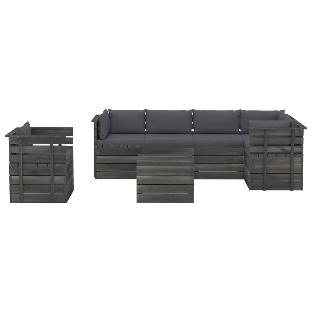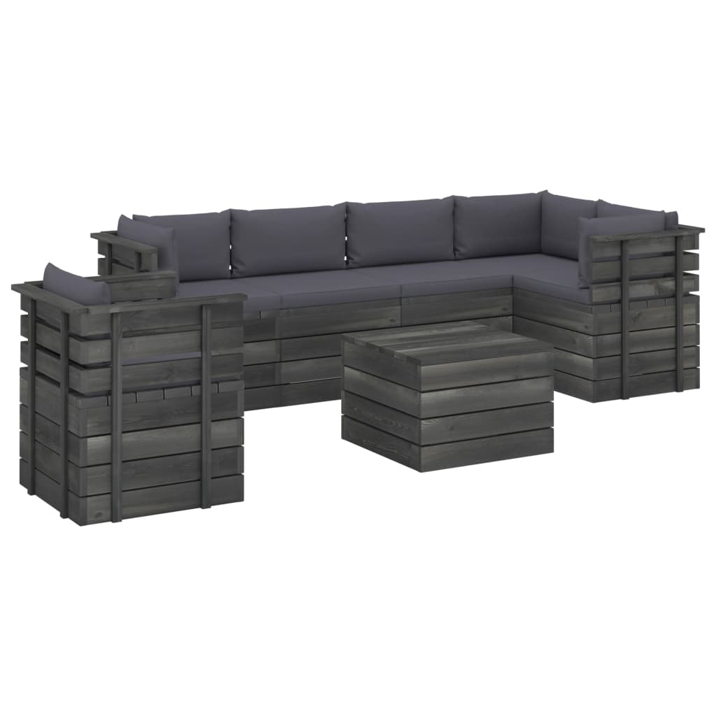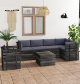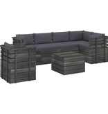 7-delige Loungeset met kussens pallet massief grenenhout