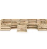 De pallet loungeset is gemaakt van geïmpregneerd grenenhout waardoor hij duurzaam, weerbestendig en milieuvriendelijk is. Deze set heeft een massieve constructie en vergt weinig onderhoud. Het modulaire design maakt het mogelijk om hem in elke gewenste samenstelling te plaatsen.