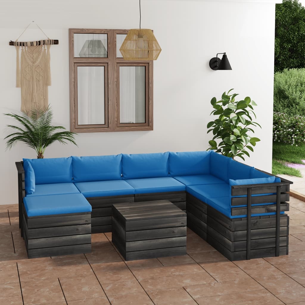 De tuinmeubelset is gemaakt van massief grenenhout waardoor hij duurzaam en stabiel is. Deze set heeft een massieve constructie en vereist weinig onderhoud. Het stevige tafelblad is ideaal om eten en drinken binnen handbereik te houden. Dankzij de 100% polyester bekleding en dikke vulling zijn de palletkussens zacht en zeer comfortabel. Bovendien maakt het modulaire ontwerp het mogelijk om de set in elke gewenste samenstelling te plaatsen.