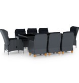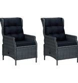 De meubelset is gemaakt van lichtgewicht en onderhoudsarm PE-rattan, waardoor hij perfect is voor buitengebruik en gemakkelijk schoon te maken is met een vochtige doek. Dankzij het gepoedercoat stalen frame zijn de stoelen en tafel stabiel en duurzaam. Het glazen tafelblad geeft je buitenruimte een luxe vleugje en is perfect om te dineren of om decoratieve spullen op te plaatsen. De dik gevoerde kussens bieden extra comfort. De kussenhoes heeft een rits waardoor hij afneembaar en wasbaar is. Dankzij het gasveermechanisme is de rugleuning van de stoel naar wens verstelbaar. Door de knop aan de zijkant kan je comfortabel op de stoel liggen.