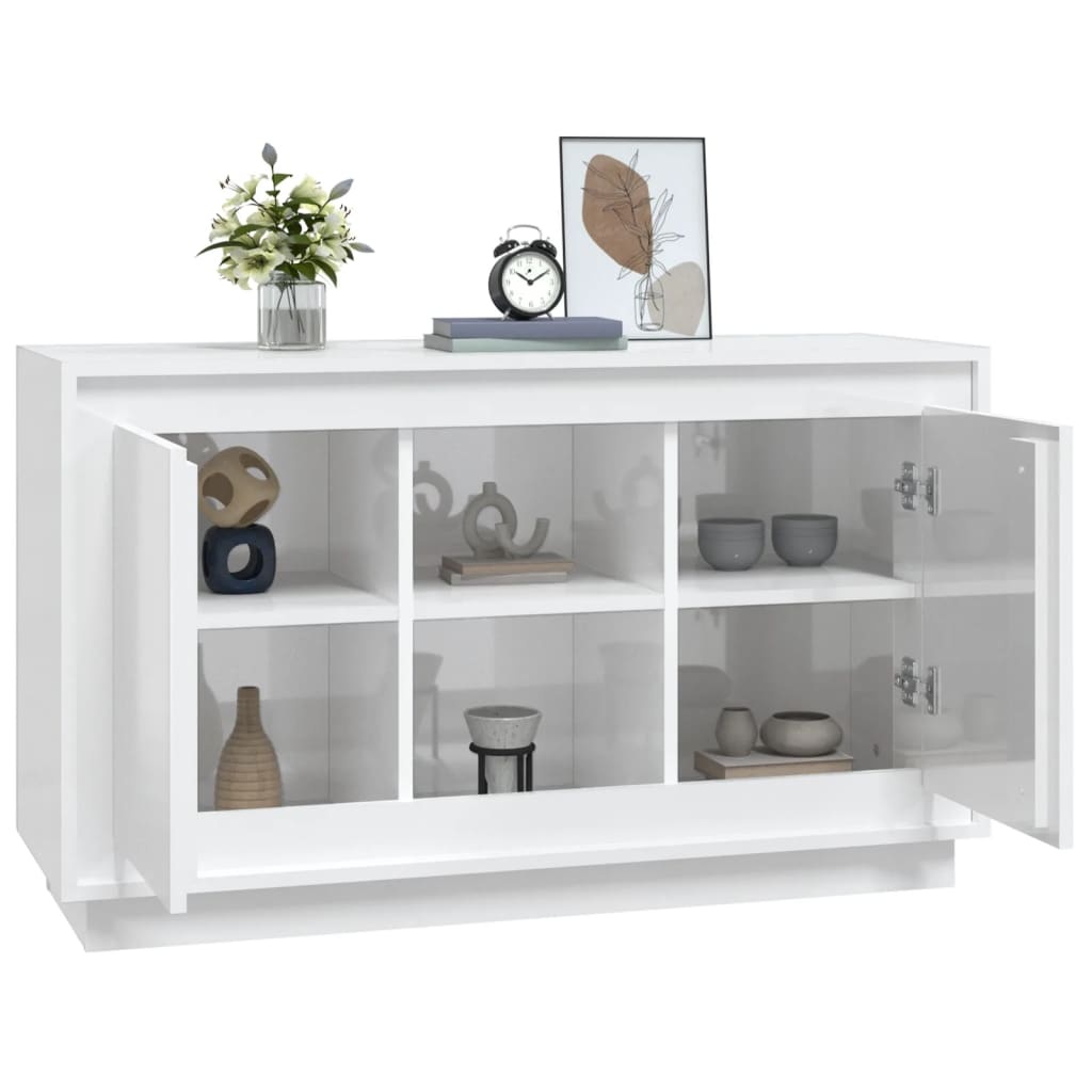 Dressoir 102x35x60 cm bewerkt hout hoogglans wit