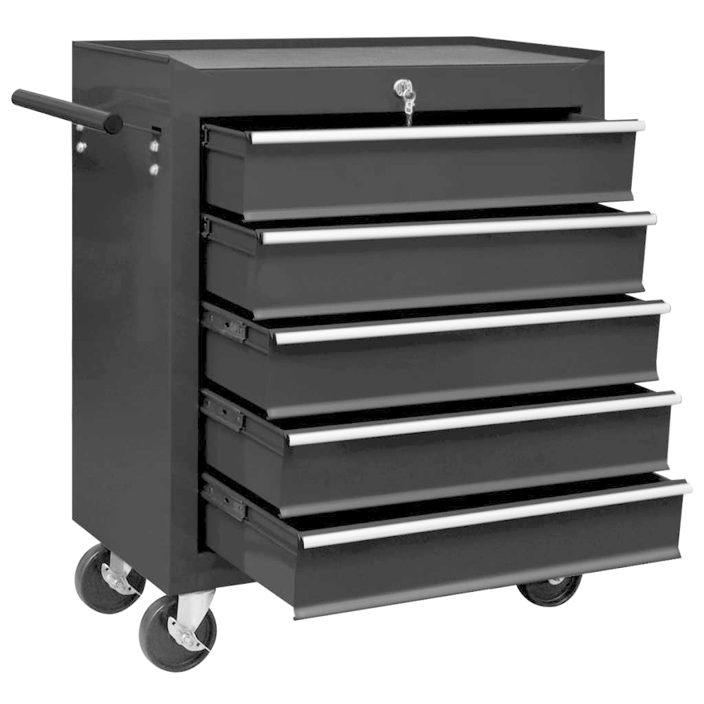 Gebruik deze handige gereedschapstrolley met 5 schuiflades om je gereedschap op te bergen en te organiseren. Elke lade heeft een anti-slip bodemvoering om je gereedschappen op hun plaats te houden.