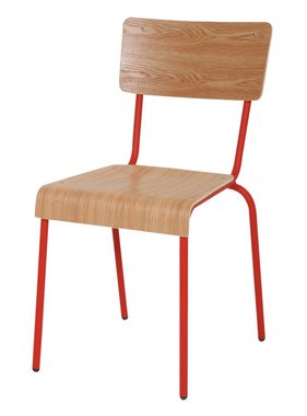 Houten kantinestoel met rood frame. Kantinestoelen via onze webshop te verkrijgen. Groot assortiment, laag geprijds, Gratis levering en uit voorraad leverbaar. Shop nu!